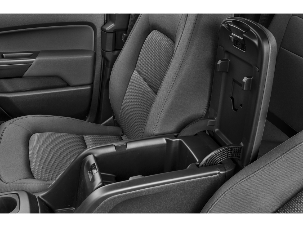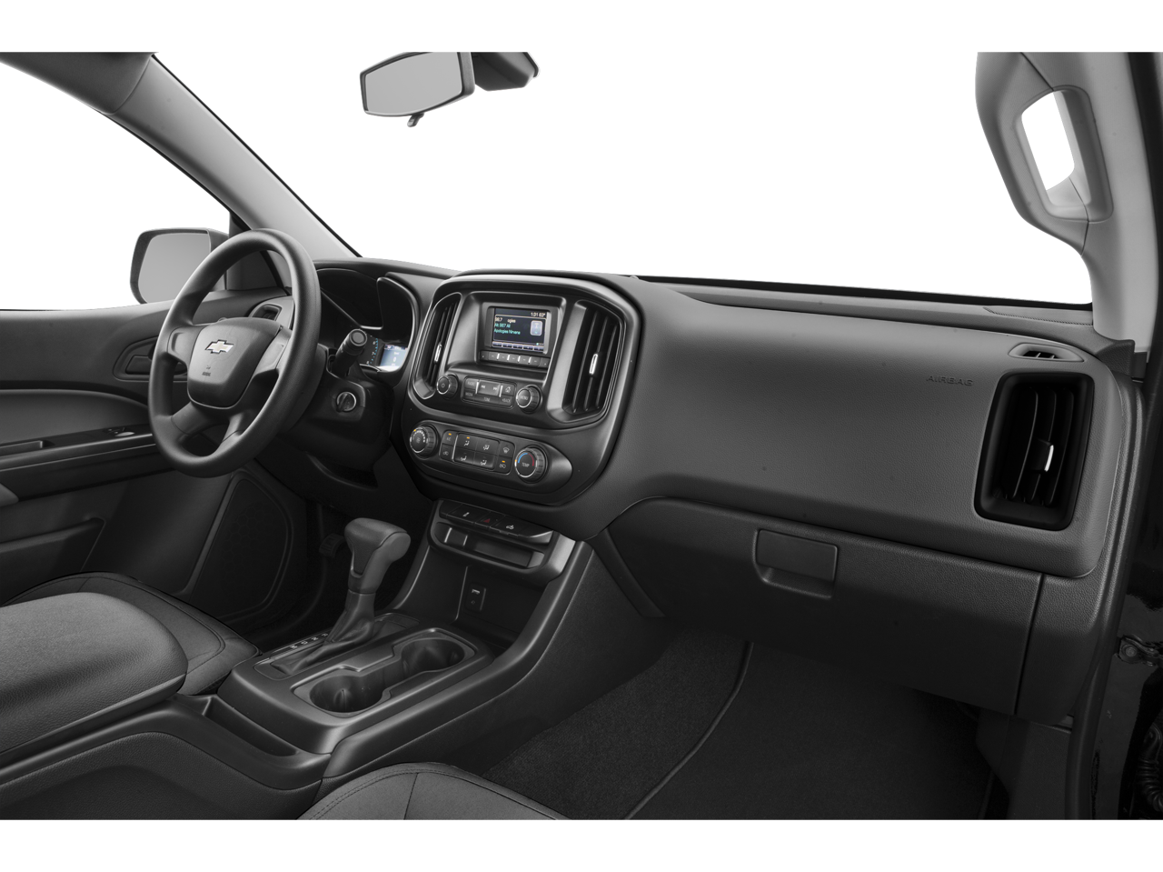 Exterior-wise, the Colorado's white paint and body-color bumpers give it a clean, professional appearance that will impress your clients and colleagues. The rear step bumper and front license plate kit add functionality and practicality to this hardworking pickup.