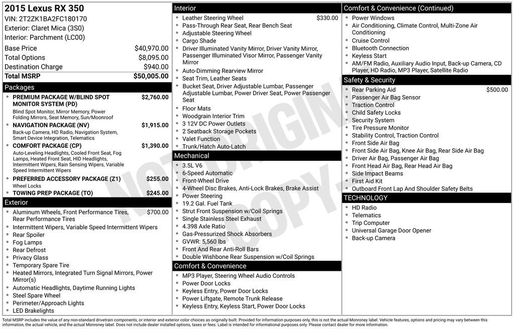 - Vehicle Name: Lexus RX 350