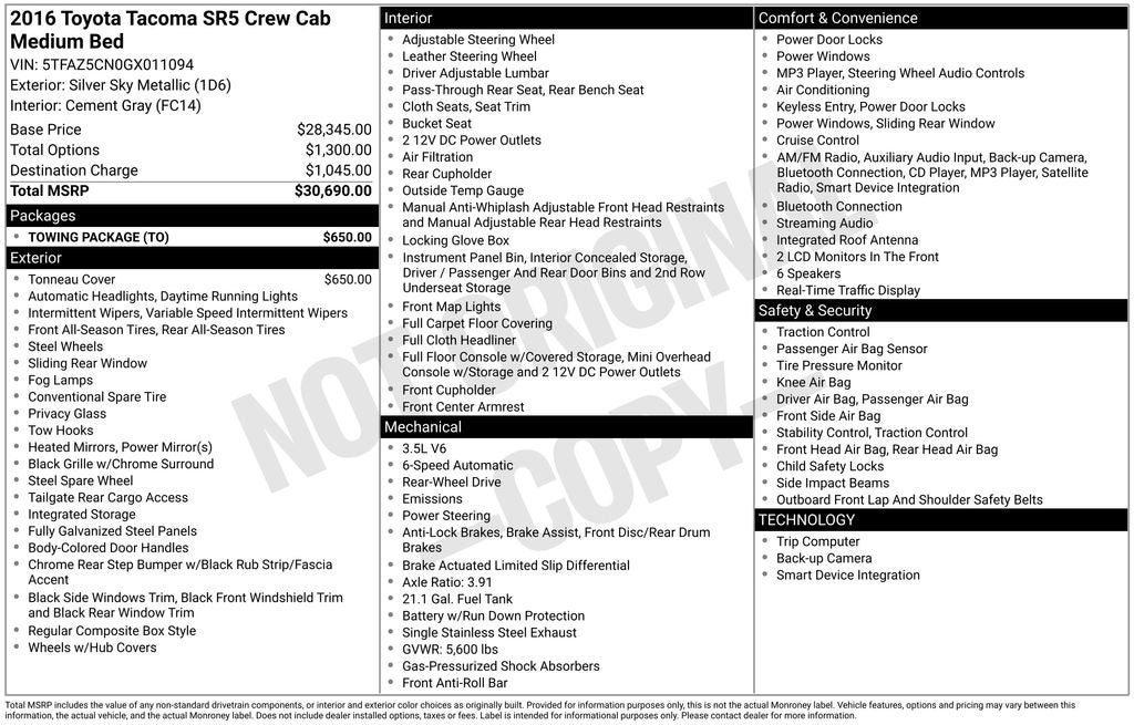 - Vehicle Name: Toyota Tacoma