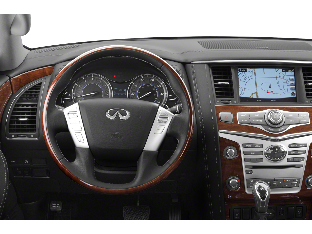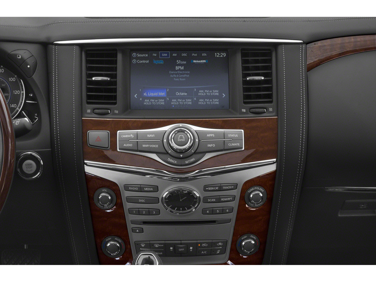 13 Speakers, 2.937 Axle Ratio, 3rd row seats: split-bench, 4-Wheel Disc Brakes, ABS brakes, Air Conditioning, Alloy wheels, AM/FM radio: SiriusXM, Anti-whiplash front head restraints, Apple CarPlay/Android Auto, Auto High-beam Headlights, Auto tilt-away steering wheel, Auto-dimming door mirrors, Auto-dimming Rear-View mirror, Auto-leveling suspension, Automatic temperature control, Black Mesh Grille Insert, Blind Spot Intervention (BSI), Blind Spot Warning, Brake assist, Bumpers: body-color, CD player, Compass, Dark Chrome Exterior Finish, Delay-off headlights, Driver door bin, Driver vanity mirror, Dual front impact airbags, Dual front side impact airbags, DVD-Audio, Edition 30 Badge, Edition 30 Package, Edition 30 Stainless Steel Kick Plates, Electronic Stability Control, Emergency communication system: INFINITI Connection, Four wheel independent suspension, Front anti-roll bar, Front Bucket Seats, Front Center Armrest, Front dual zone A/C, Front fog lights, Front reading lights, Fully automatic headlights, Garage door transmitter: HomeLink, Graphite Headliner/Sun Visors/Sun Shades, Heated door mirrors, Heated Front Bucket Seats, Heated front seats, Heated steering wheel, Illuminated entry, Intelligent Cruise Control, Lane Departure Prevention (LDP), Leather Shift Knob, Leather steering wheel, Leather-Appointed Seats, Literature Kit, Low tire pressure warning, Memory seat, Navigation system: INFINITI InTouch Navigation, Occupant sensing airbag, Outside temperature display, Overhead airbag, Overhead console, Panic alarm, Passenger door bin, Passenger vanity mirror, Power door mirrors, Power driver seat, Power Liftgate, Power moonroof, Power passenger seat, Power steering, Power windows, ProASSIST Package (Edition 30), Radio data system, Radio: AM/FM/HD w/Single In-Dash CD Player & MP3, Rain sensing wipers, Rear air conditioning, Rear anti-roll bar, Rear audio controls, Rear reading lights, Rear seat center armrest, Rear window defroster, Rear window wiper, Reclining 3rd row seat, Remote keyless entry, Security system, Smart Rear View Mirror, Speed control, Speed-sensing steering, Split folding rear seat, Spoiler, Steering wheel memory, Steering wheel mounted audio controls, Tachometer, Telescoping steering wheel, Tilt steering wheel, Traction control, Trip computer, Turn signal indicator mirrors, Variably intermittent wipers, Voltmeter, Wheels: 22 x 8.0 Forged Alum-Alloy.