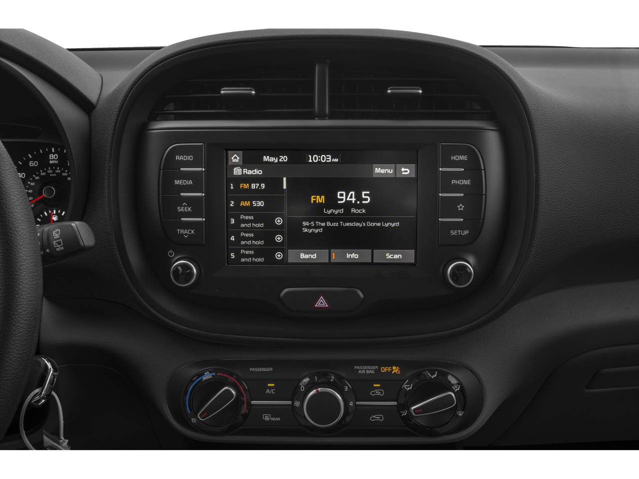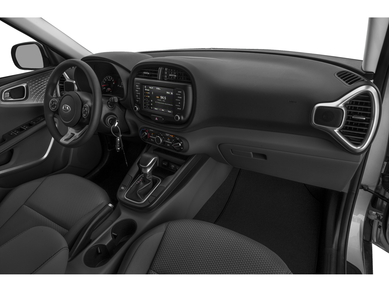The interior of the 2020 Kia Soul S is designed with your comfort and convenience in mind. Sink into the supportive, woven cloth seats and enjoy the convenience of Apple CarPlay and Android Auto integration, allowing you to seamlessly connect your smartphone and access your favorite apps, music, and navigation with ease.