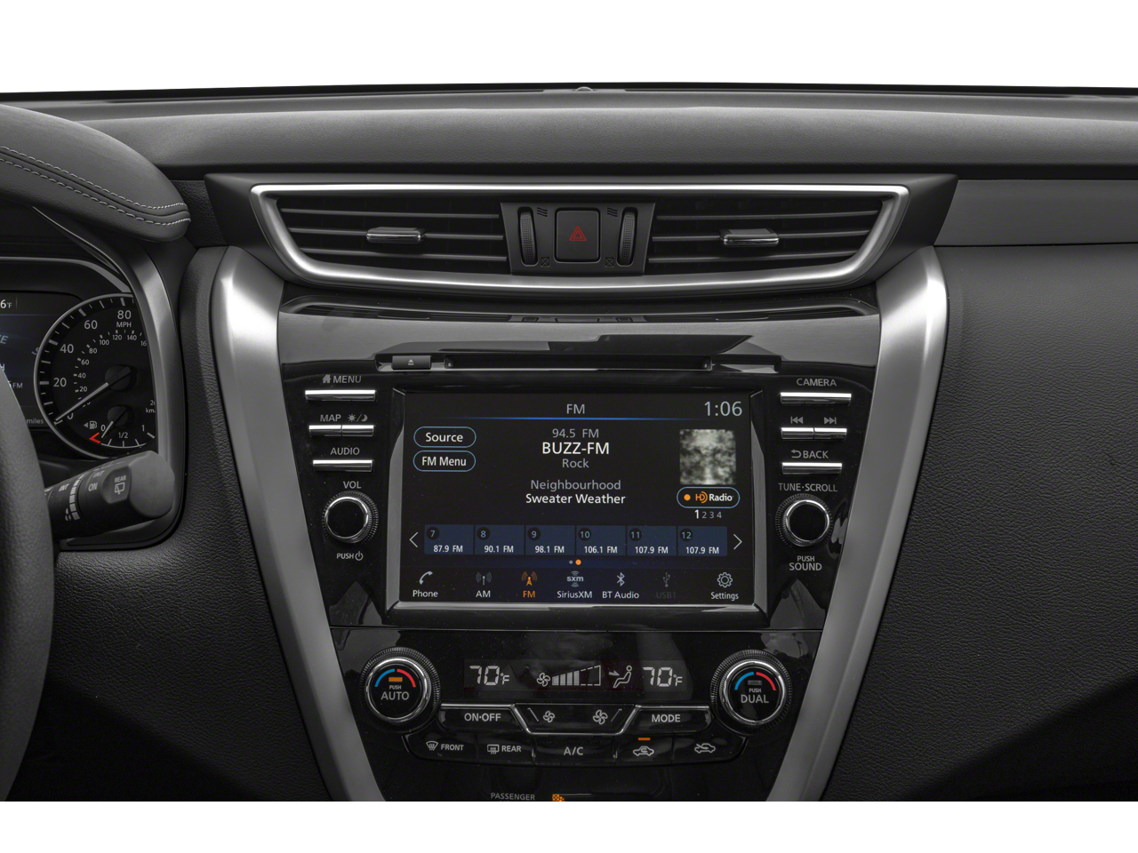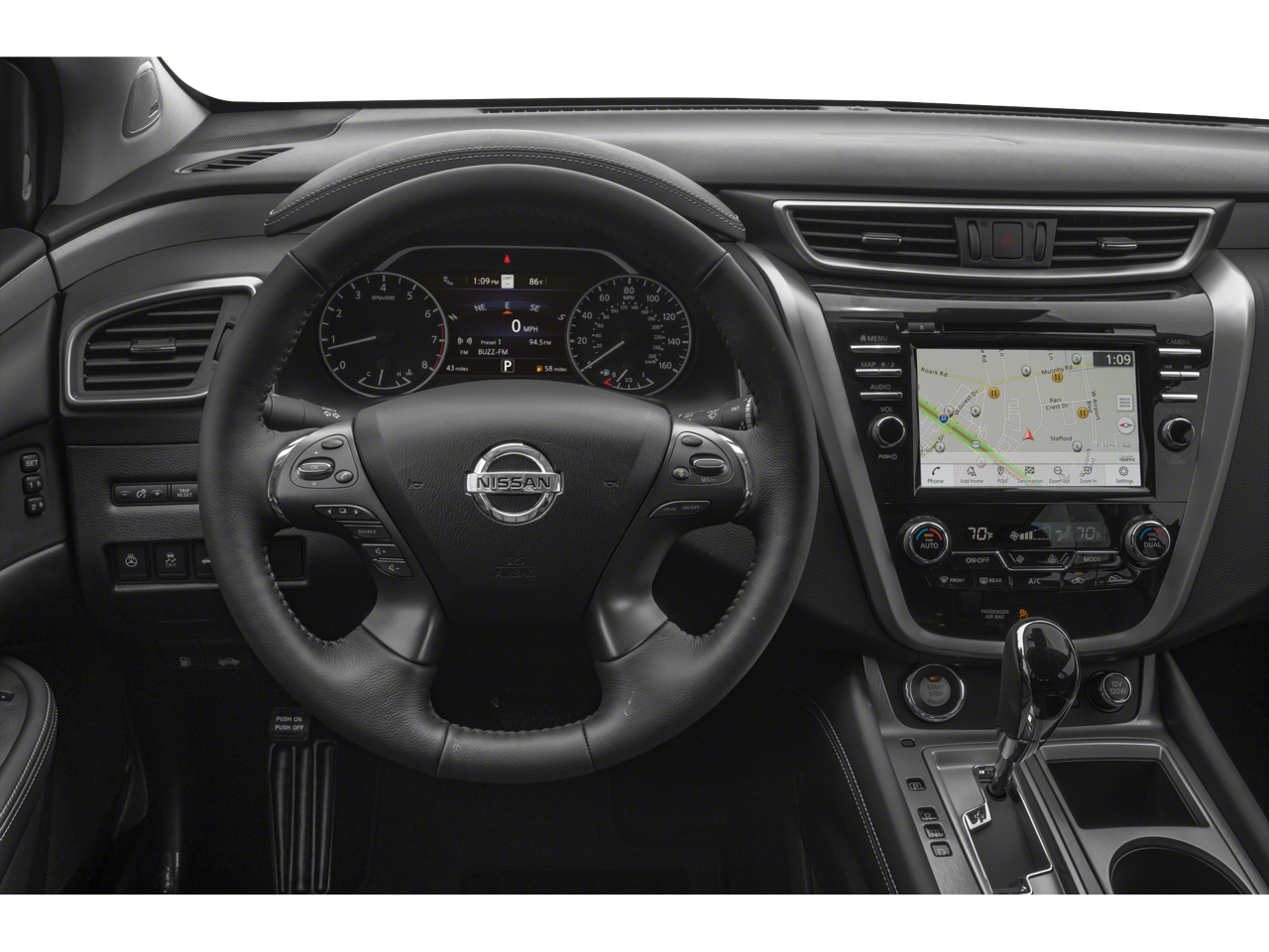 Beyond its impressive powertrain, this Murano SL is brimming with premium features designed to elevate your driving experience. The Dual-Panel Moonroof allows you to enjoy the open sky, while the NissanConnect Navigation system keeps you connected and on-course. The Leather-Appointed Seat Trim, Heated Front Seats, and Heated Steering Wheel ensure your comfort, no matter the weather. And with the Blind Spot Warning system, you can drive with added peace of mind, knowing that your surroundings are being monitored for your safety.