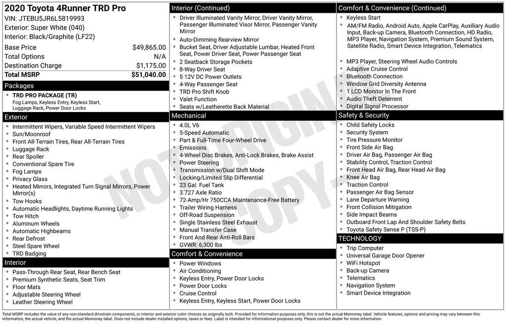 Adventure-ready and legendary for its durability, this 2020 Toyota 4Runner TRD Pro delivers rugged capability with bold TRD styling and premium comfort.