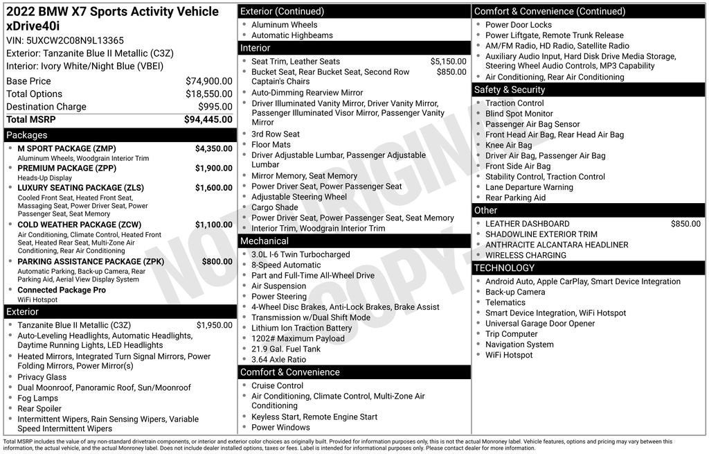 Elevate your driving experience with this stunning 2022 BMW X7 xDrive40i. Boasting a captivating Blue exterior and a meticulously crafted Ivory White/Night Blue Merino leather interior, this premium SUV is a true testament to BMW's commitment to exceptional design and engineering.