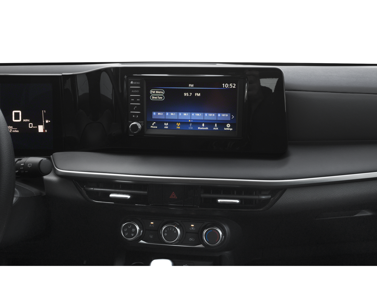 Step inside the Kicks S and discover a cabin that blends style and functionality. The cloth seat trim and sporty steering wheel create a refined ambiance, while the split-folding rear seat and generous cargo space ensure ample room for your adventures. Stay connected with the AM/FM audio system, complete with Bluetooth® connectivity and steering wheel-mounted controls.