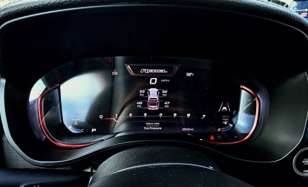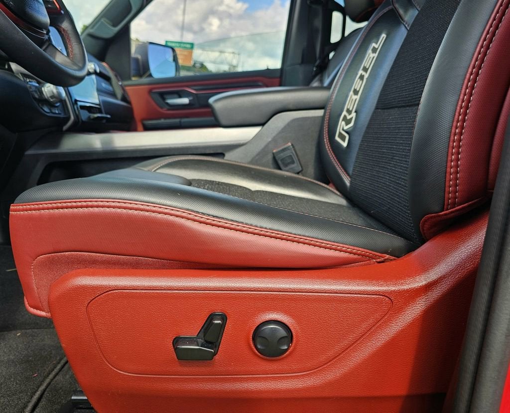 The Rebel's striking exterior, with its bold grille and unique off-road-inspired design, commands attention wherever you go. Step inside and you'll be greeted by a spacious and well-appointed cabin, featuring premium cloth and vinyl bucket seats, a heated steering wheel, and a state-of-the-art Uconnect 5 infotainment system with a massive 12-inch display.